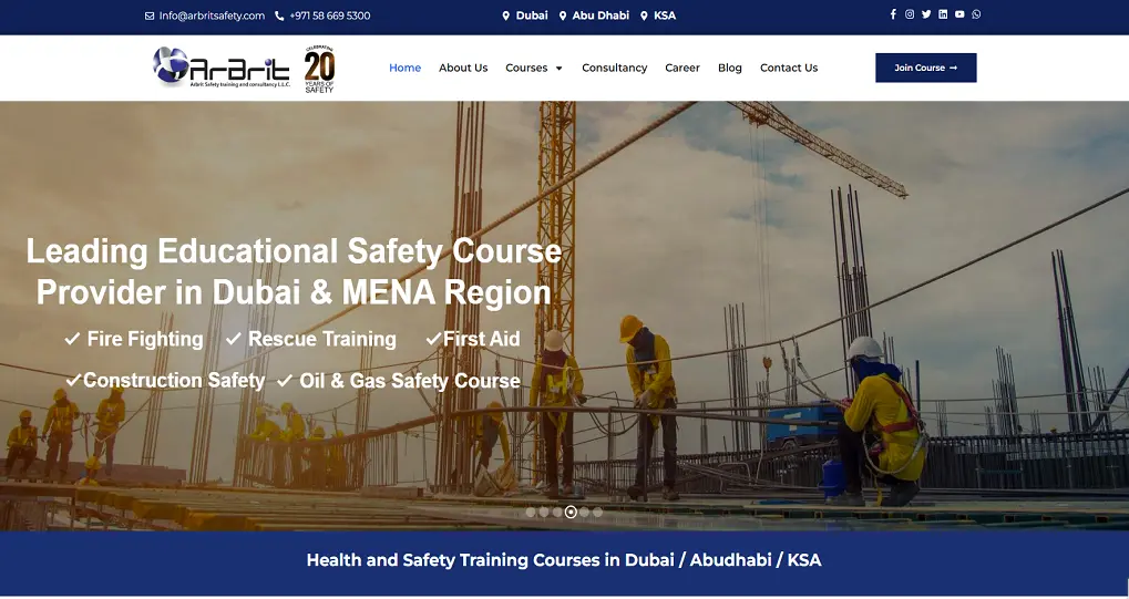 Arbrit Safety is a health and safety training company that provides training in the UAE. The company offers a variety of courses, including first aid, fire safety, and construction safety with experienced and qualified trainers. For years they have trained and continue to educate professionals so they can handle any emergency situation.